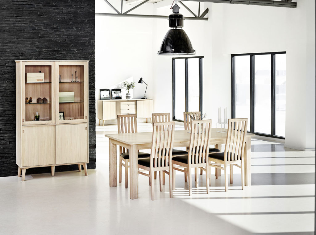 Kan fås i hvitoljet eik eller med hvit laminat på bordplate.