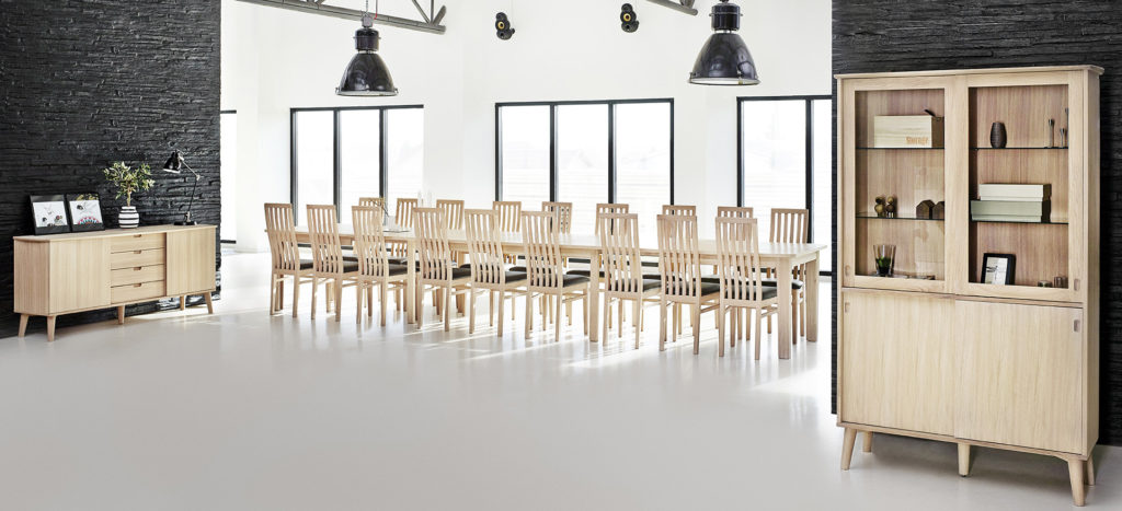 Bordet kan ha 6 tilleggsplater a`50x100cm. Bordet blir da 5 meter langt. Plass til 22 personer.